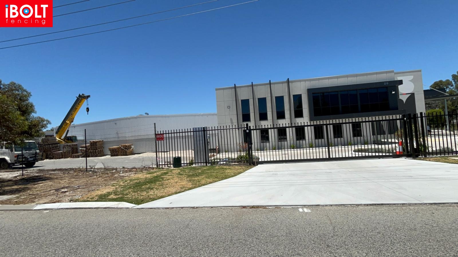 20 Hazelhurst Street, Kewdale – Garrison and chain link fencing combined with sliding gates to create a strong and functional perimeter solution by iBOLT Fencing.