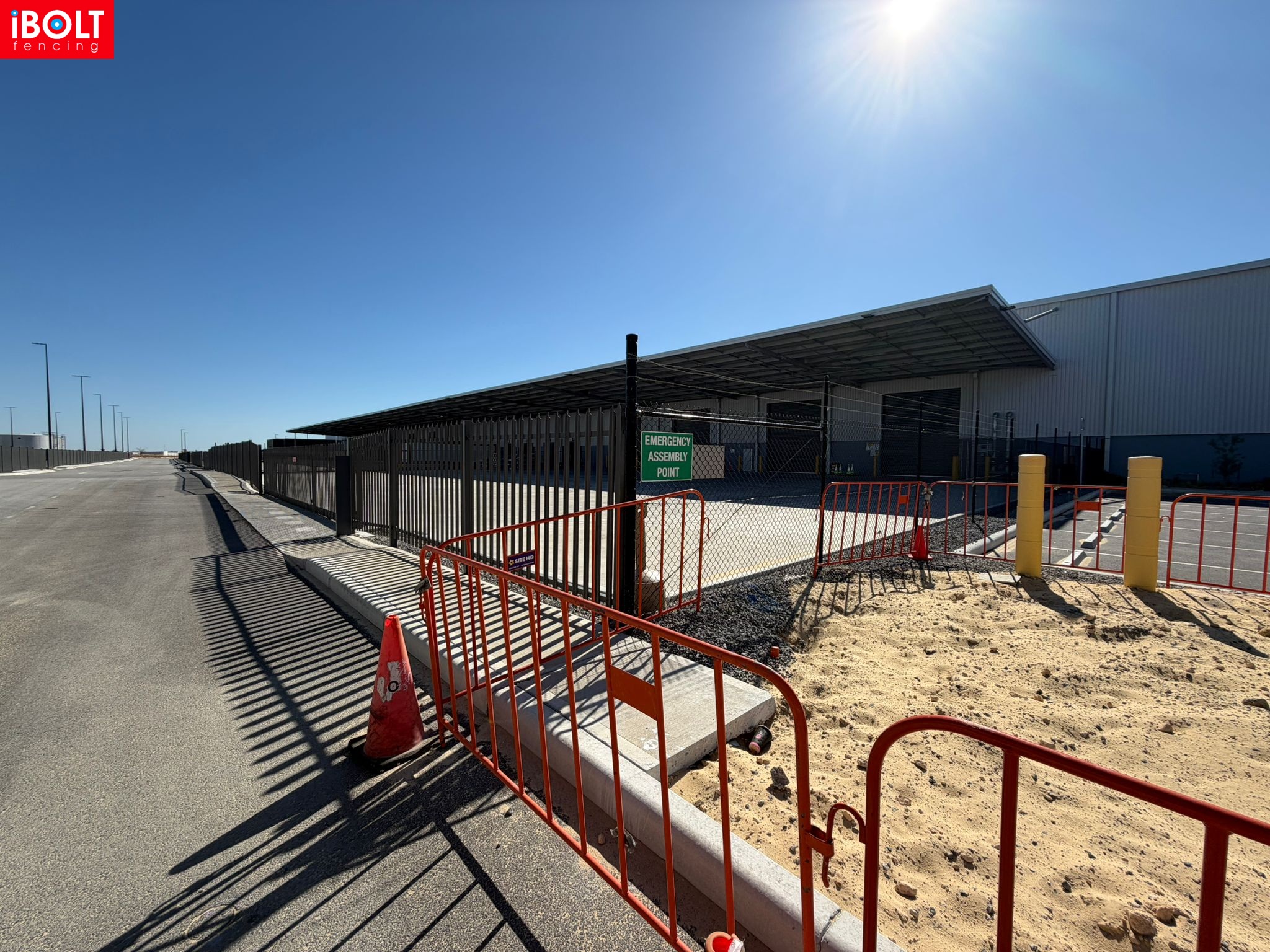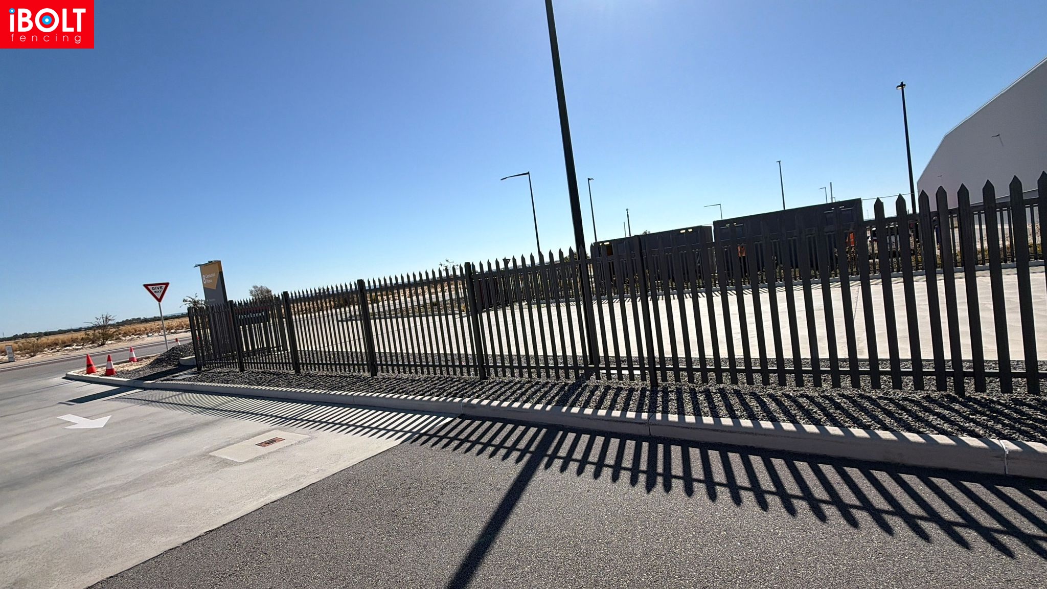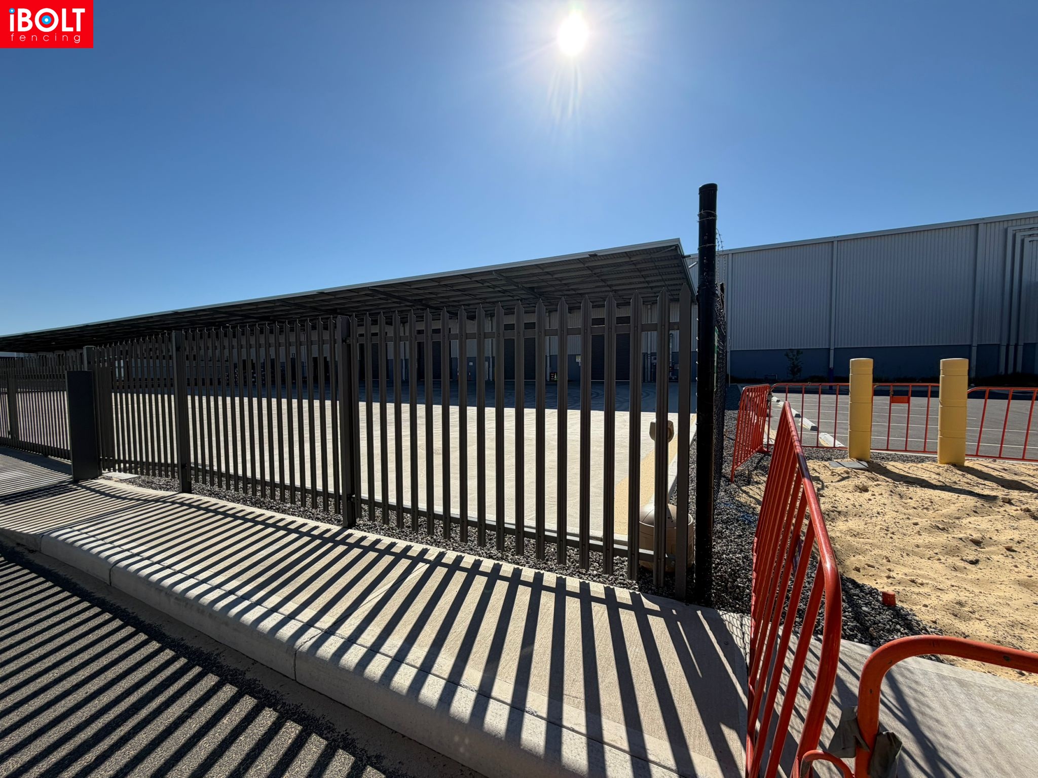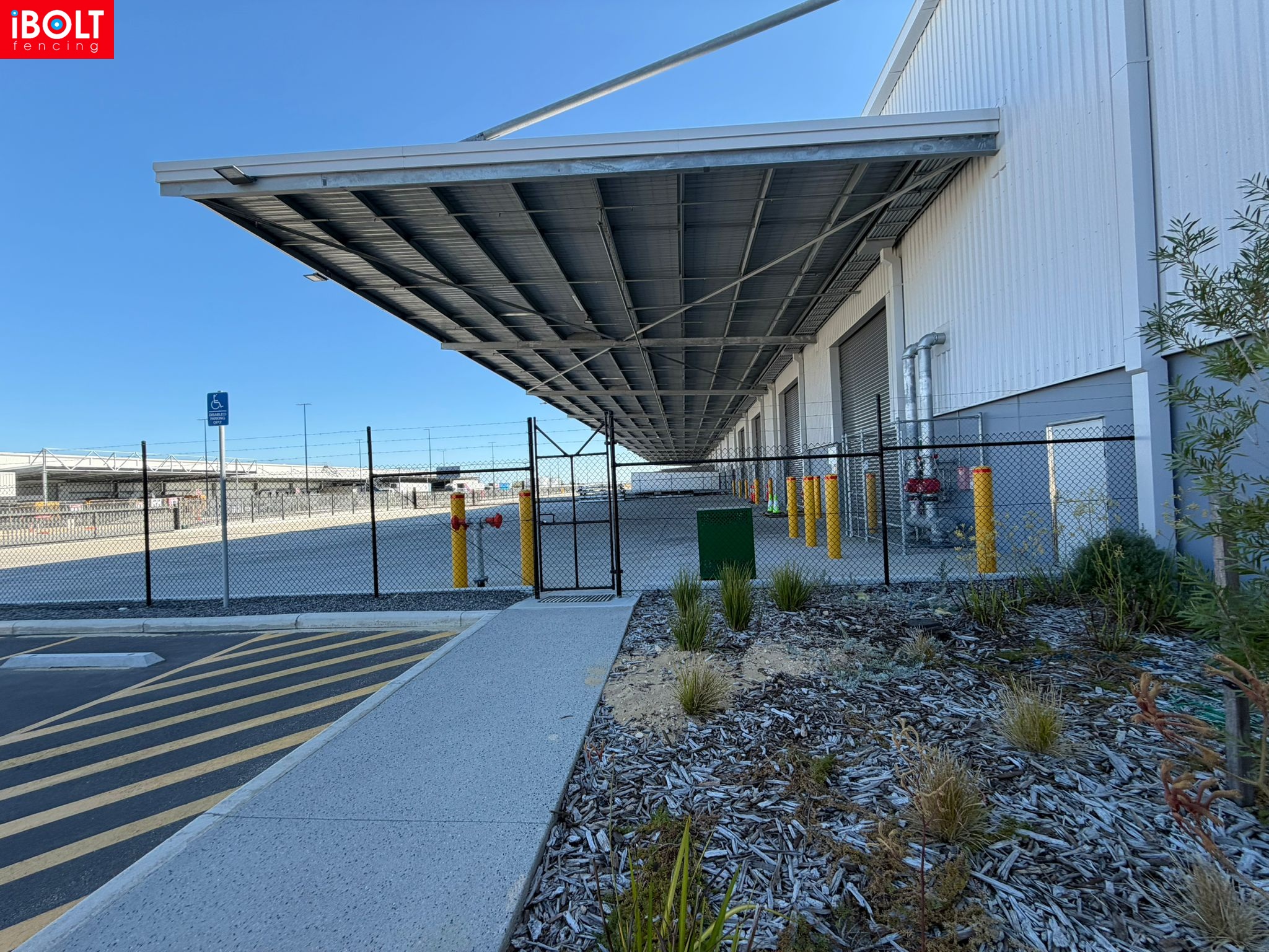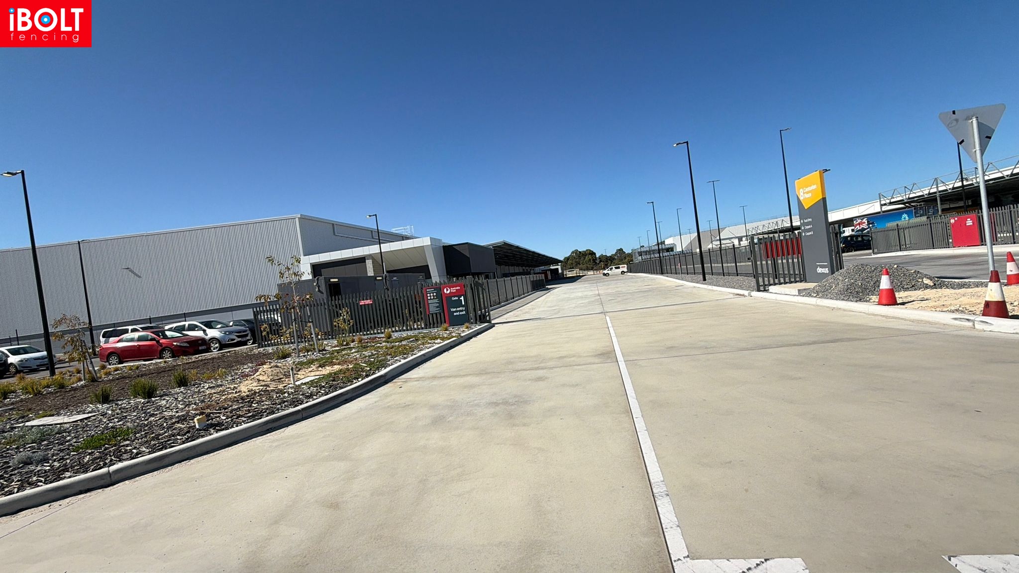 Australia Post – Centurion Place, Jandakot Airport: palisade fencing, chain mesh fencing, sliding gates, PA gates and double swing gates delivered to support secure, well-managed site access by iBOLT Fencing.
