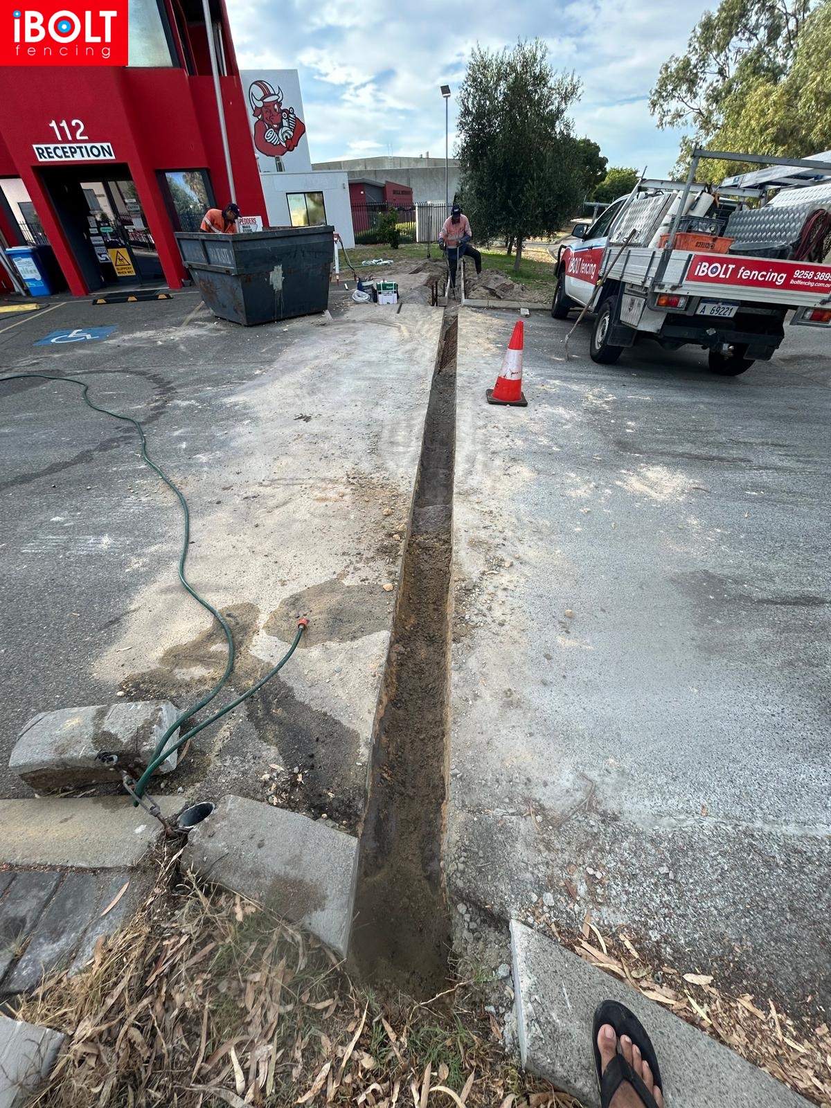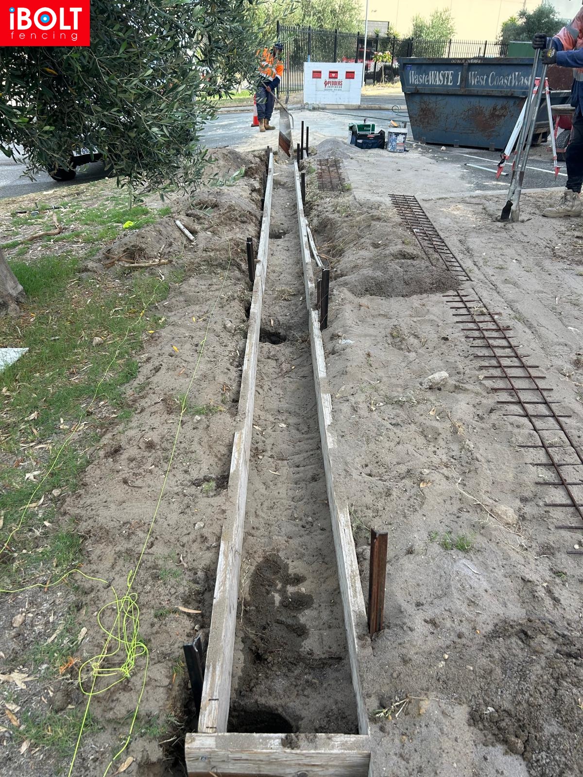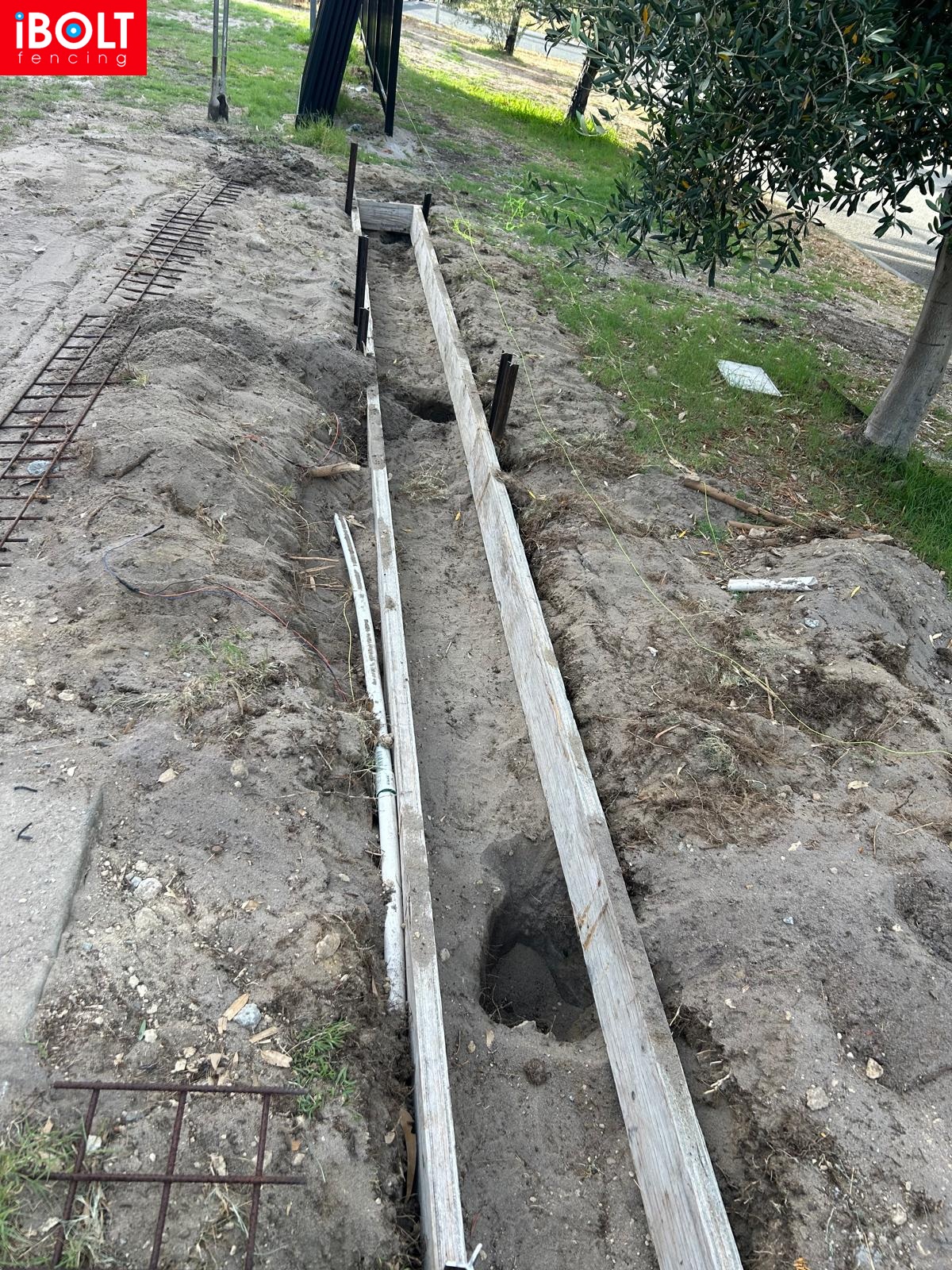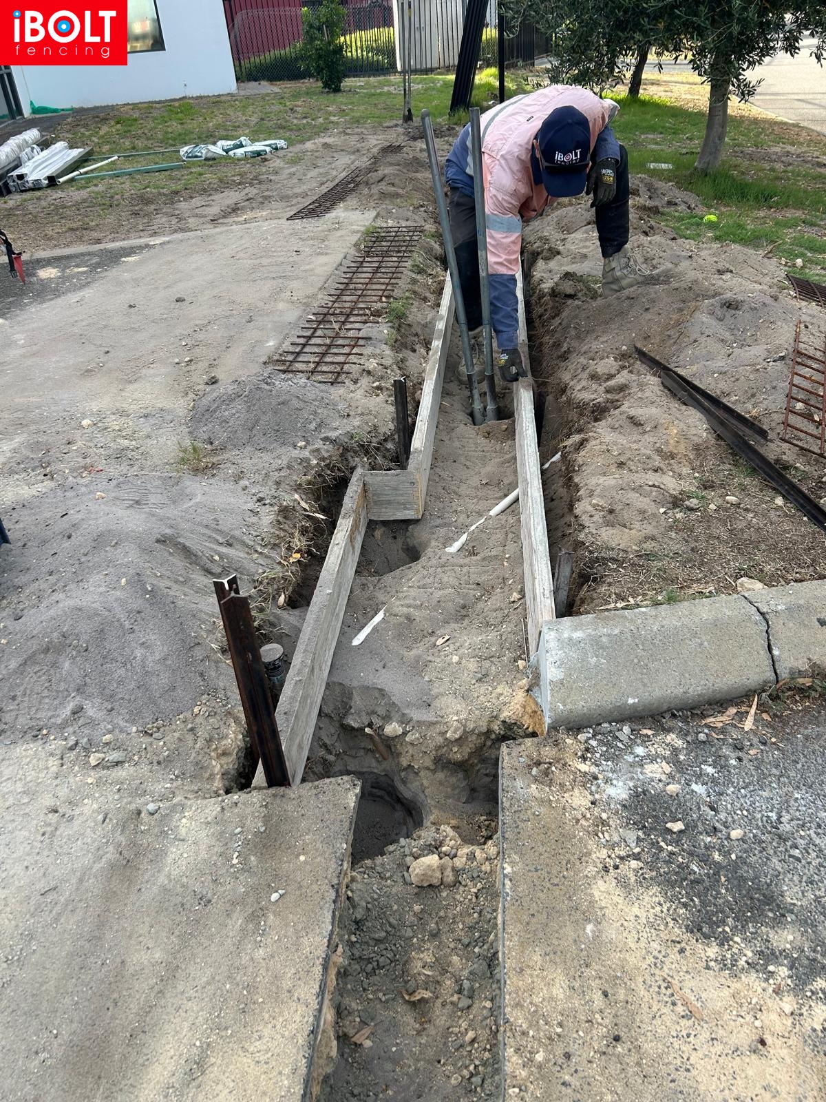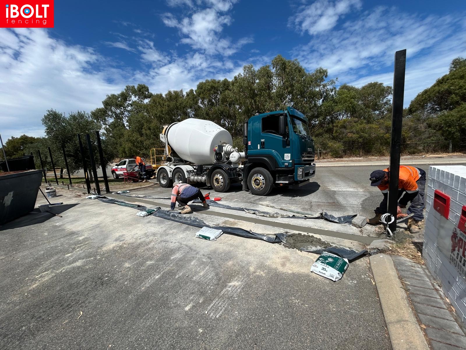 Concrete plinth for sliding gate installation at Suspension Pedders — delivered by Ibolt Fencing with precision and durability.