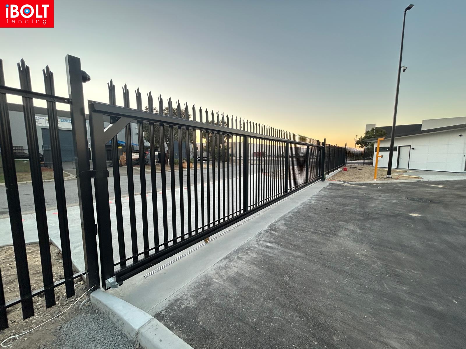 Palisade fencing project for Fleetspec Hire — delivered by Ibolt Fencing to provide high-security perimeter protection with a strong, professional finish.