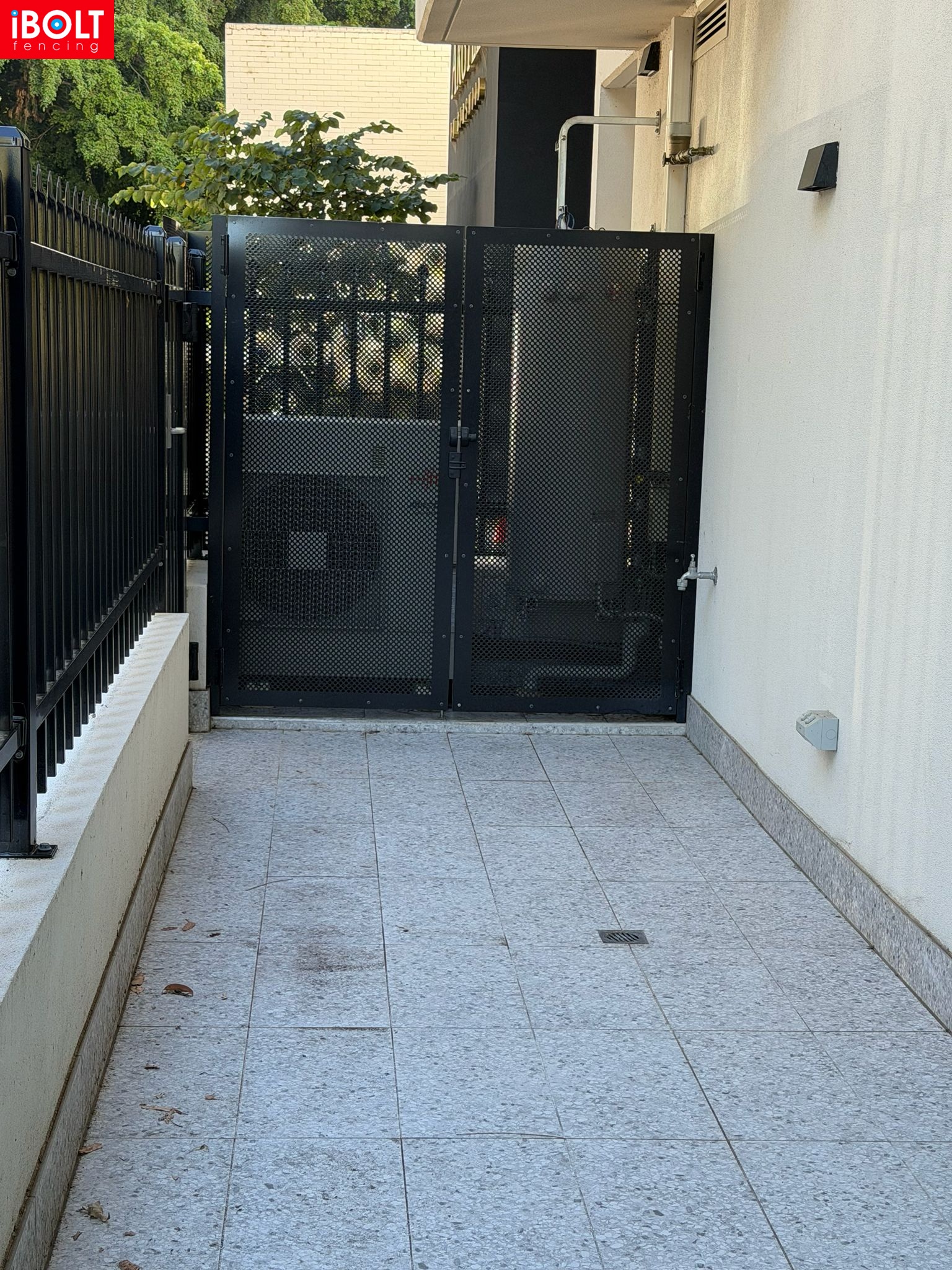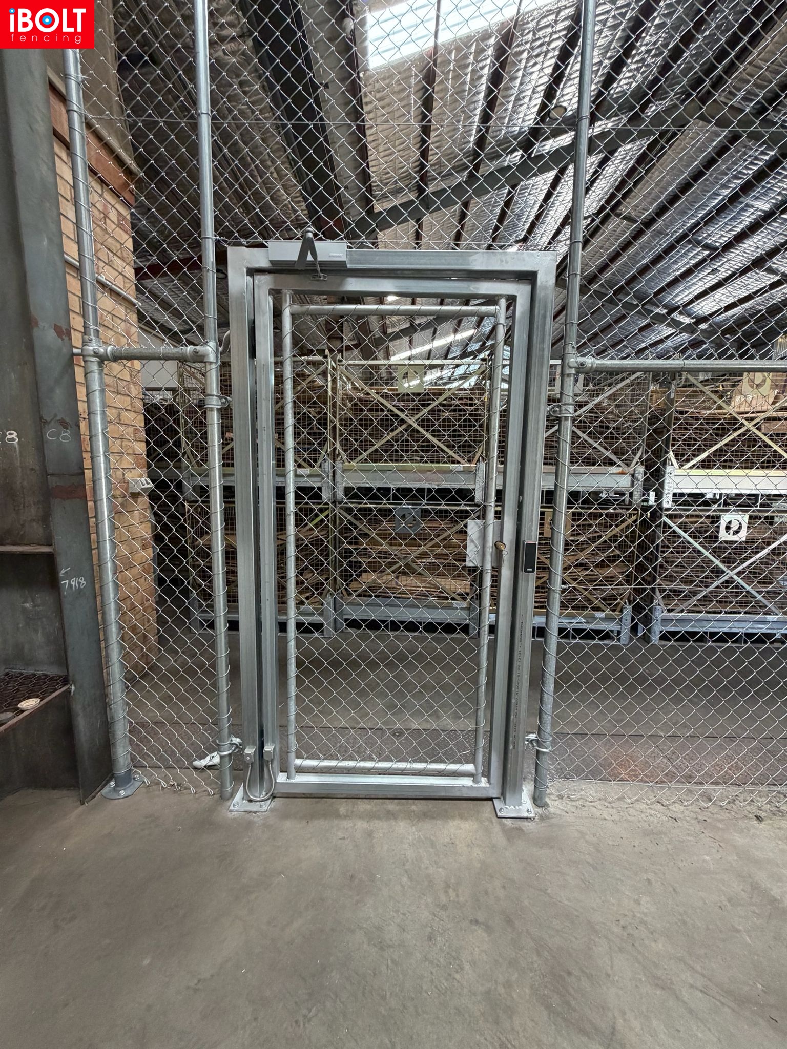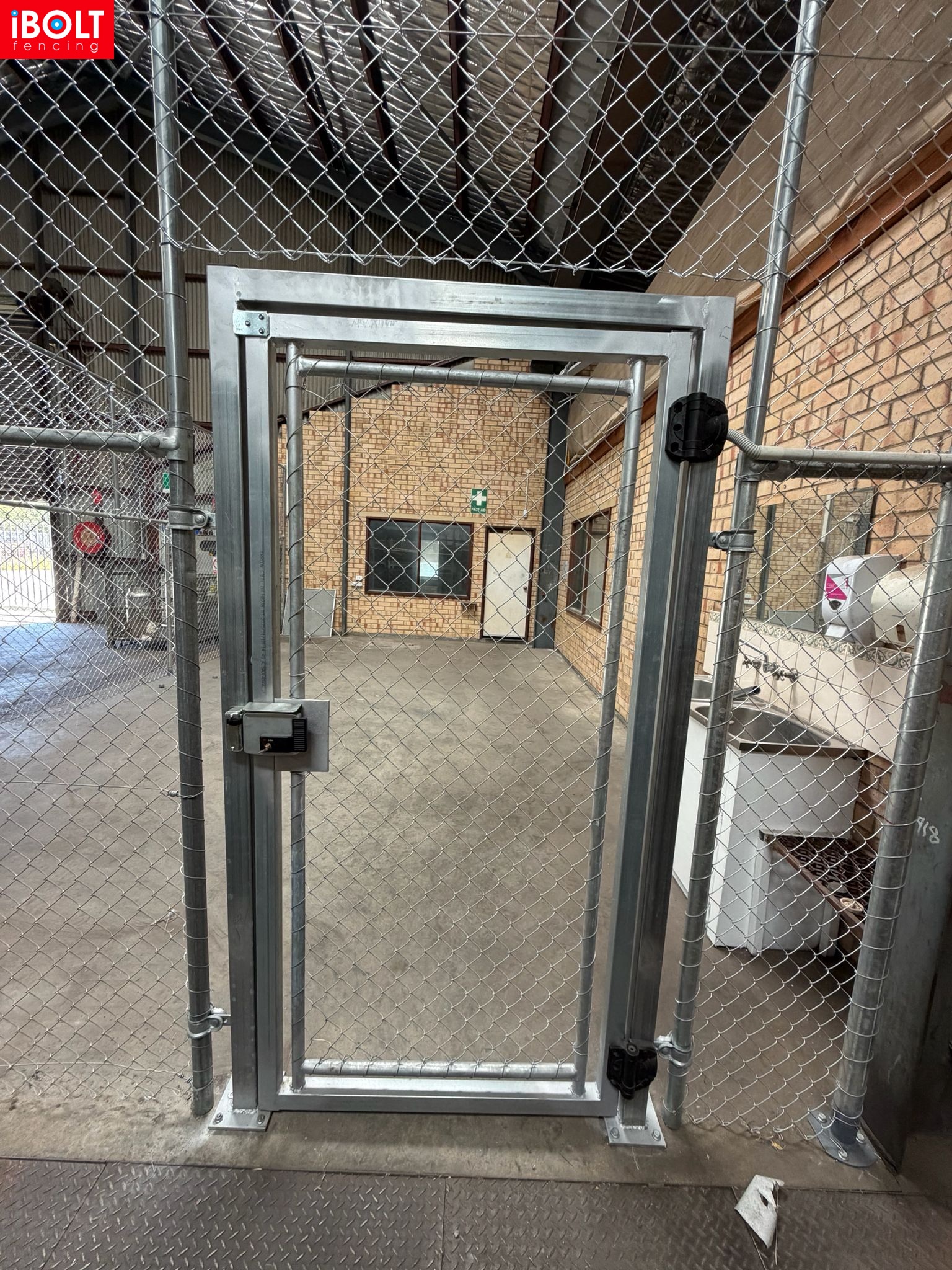 Small Jobs – Specialised Security & Enclosure Works: V palisade fencing, black chainmesh fire enclosures, galvanised high-security gates for border security, and flat-top aluminium sliding doors supplied and installed by iBOLT Fencing.